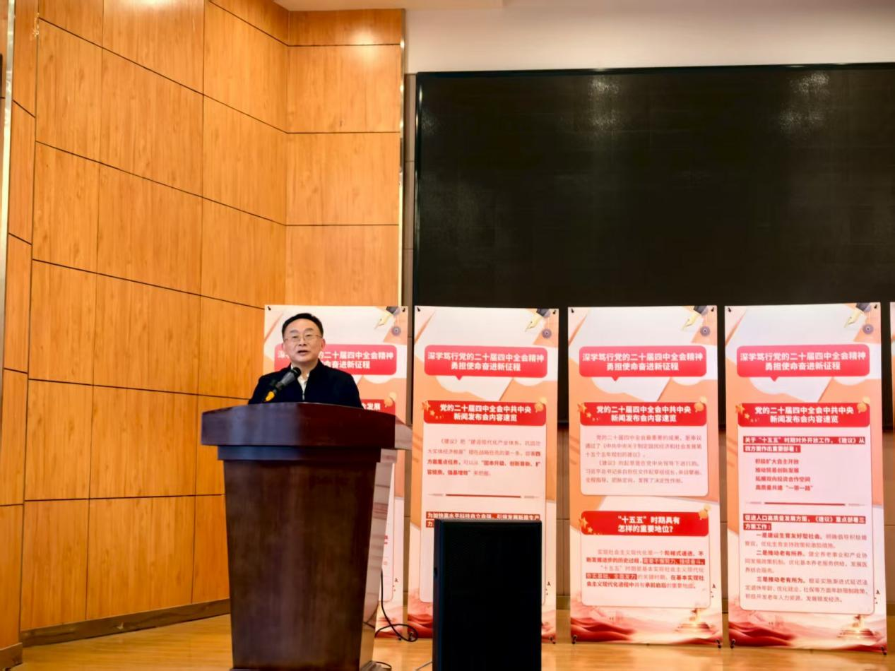 他指出,“十五五”是基本实现社会主义现代化的关键期,《建议》明确的七大目标(如高质量发展、科技自立自强、美丽中国建设等)与学院人才培养、学科方向紧密契合。汪祥松结合习近平生态文明思想,强调绿色发展是高质量发展的鲜明主题,号召全院师生以全会精神为指引,在生态保护、绿色技术攻关等领域积极作为,勇担使命,为建设人与自然和谐共生的现代化贡献学院力量。